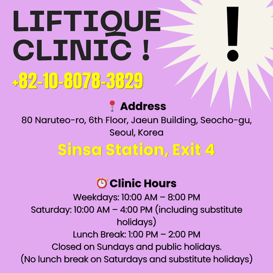 Liftique Skin Clinic in Gangnam, Seoul, offers advanced cosmetic treatments designed to enhance natural beauty through the latest non-surgical procedures. Specializing in anti-aging solutions, skin rejuvenation, and body contouring, the clinic provides popular services such as Botox, Laser therapies and HIFU treatments. Staffed by highly trained cosmetic specialists, Ever Skin Clinicprioritizes personalized care, patient comfort, and privacy, ensuring a luxury experience for both local and international clients seeking aesthetic transformations.